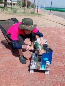 火をおこしての、簡単調理。